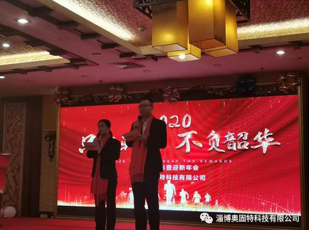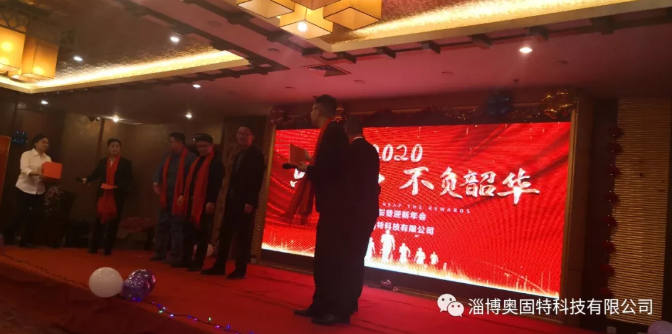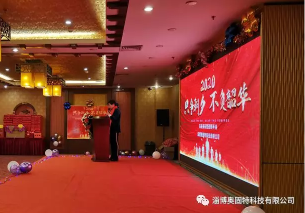 晚會開始首先由淄博奧固特科技有限公司執(zhí)行董事王總發(fā)表致辭,并宣布2020年度先進表彰暨迎新年會正式開始,她代表公司感謝各位在過去一年為公司做出的貢獻和努力,并向全體員工致以親切的問候和新年的祝福。